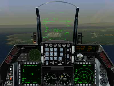 Down left view. Notice the ADI, VV, and AOA indicators! Much better than the default cockpit.