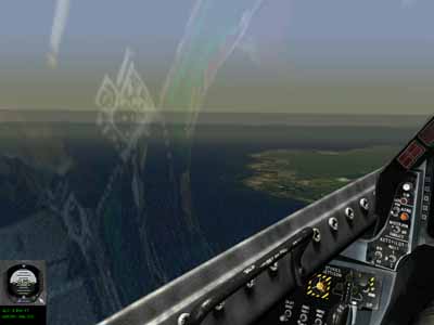 Down left view. Notice the ADI, VV, and AOA indicators! Much better than the default cockpit.